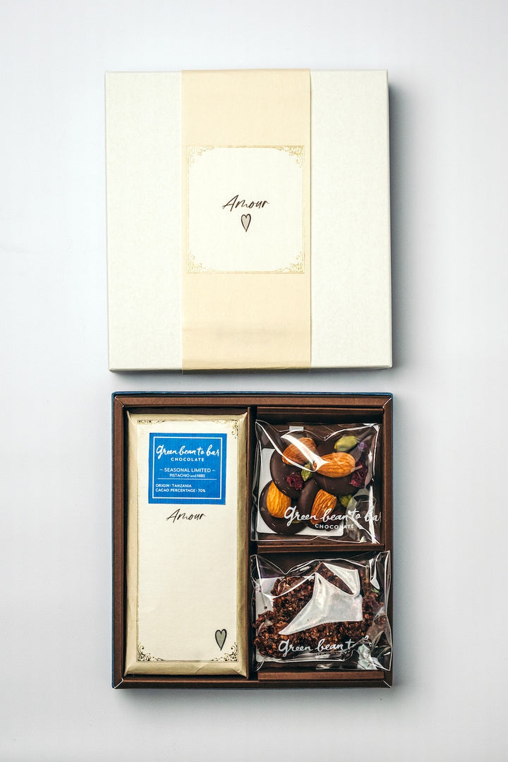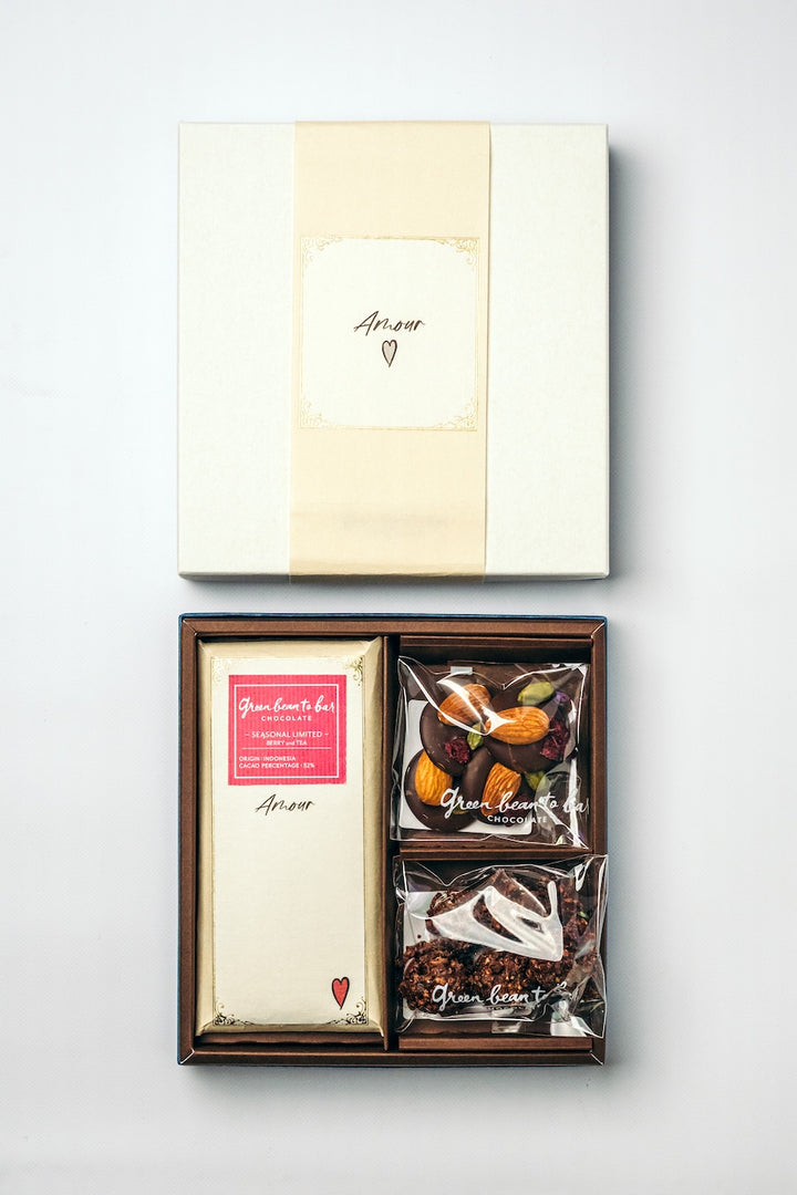 シーズナルと幻のカカオのバーを一度に味わえる、特別なセットです。