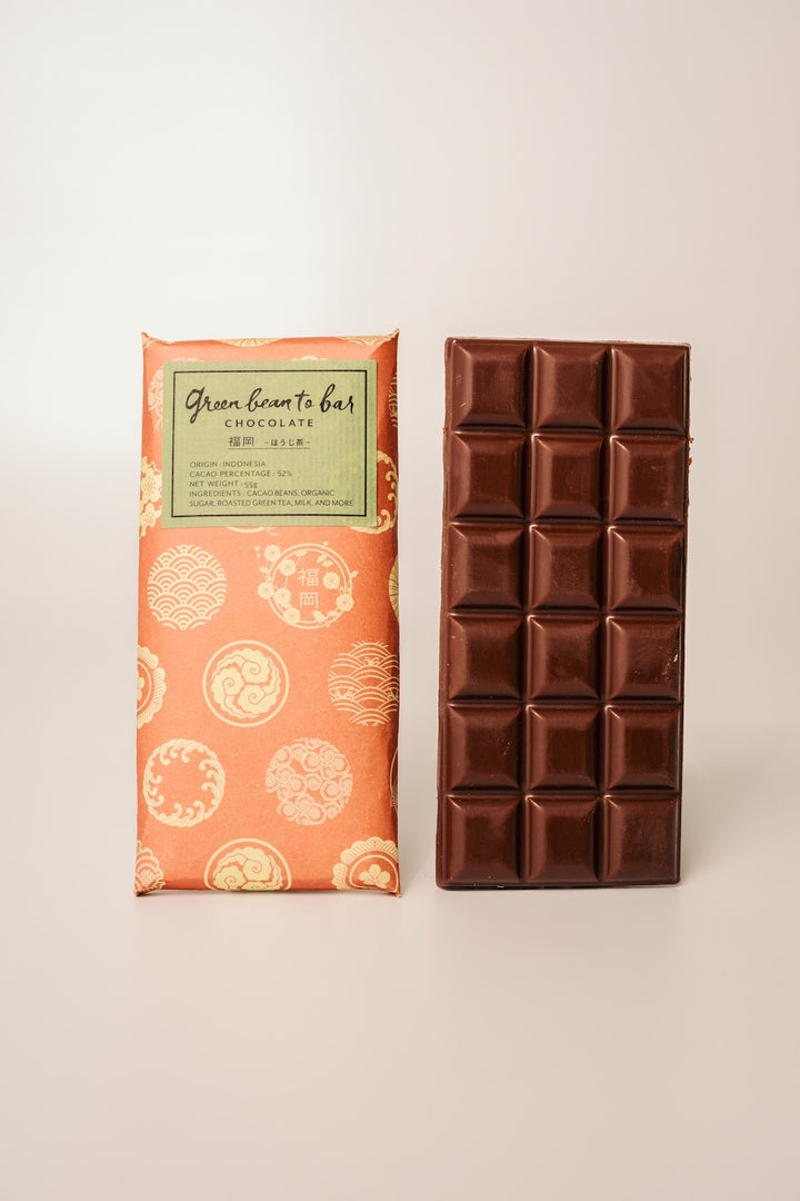 有機栽培歴50年を誇る茶農家・新川製茶の有機焙じ茶を混ぜ込んだミルクチョコレート。