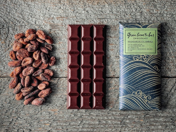 - greenといえば、チョコレートバーが定番の商品です。チョコレートバーは、産地を混ぜることなくひとつの産地のカカオ⾖のみを使って作る”シングルオリジン”にこだわっています。商品の名前は、ほとんどが産地の国名・地域名になっています。
