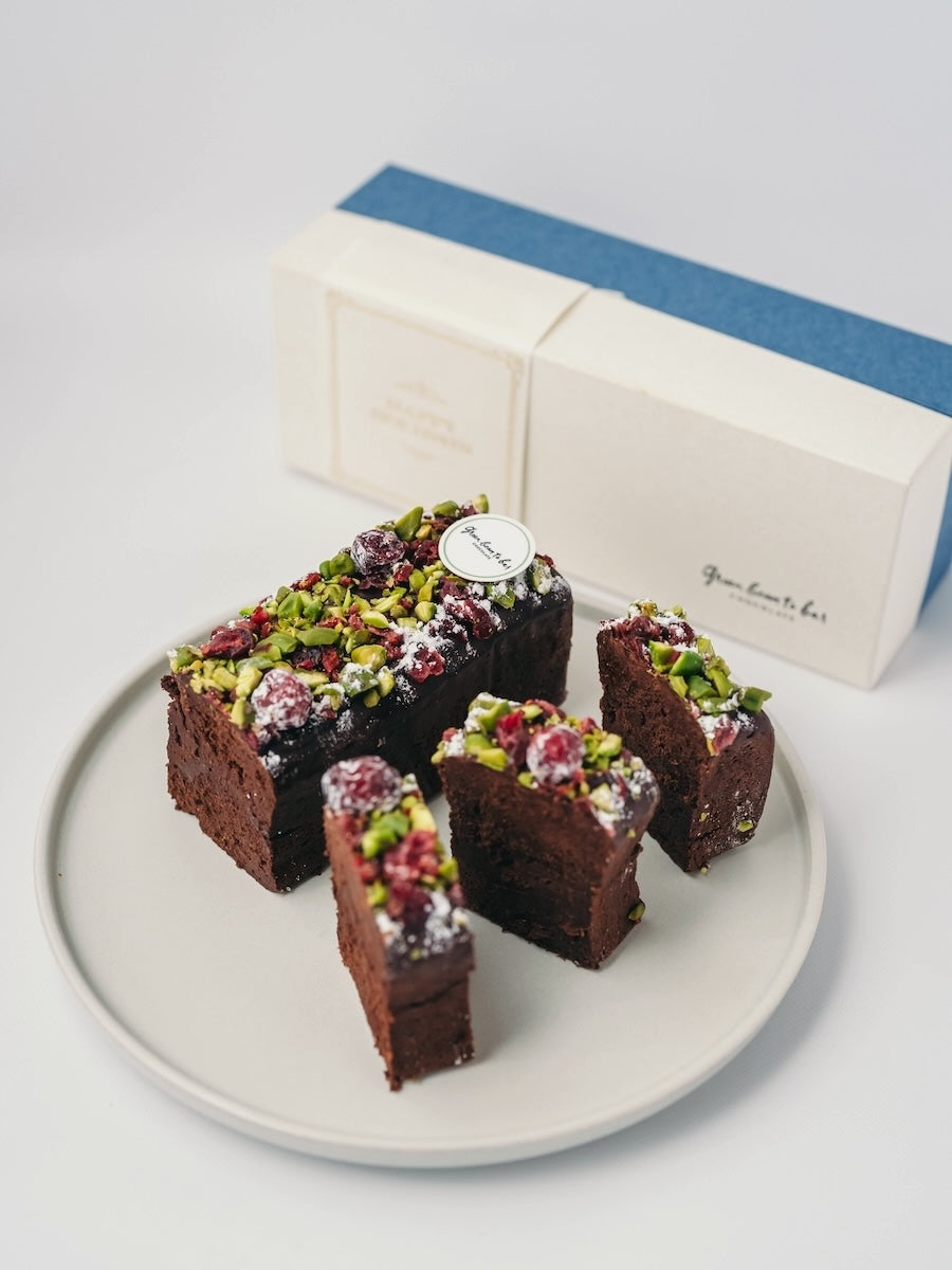 - CHRISTMAS LIMITEDでは、濃厚なガトーショコラに、クランベリー・ピスタチオ・ガーナニブ・コーティングチョコをトッピングしました。クランベリーの酸味やピスタチオの香ばしさが味わいに変化を与え、食感にアクセントを加えています。