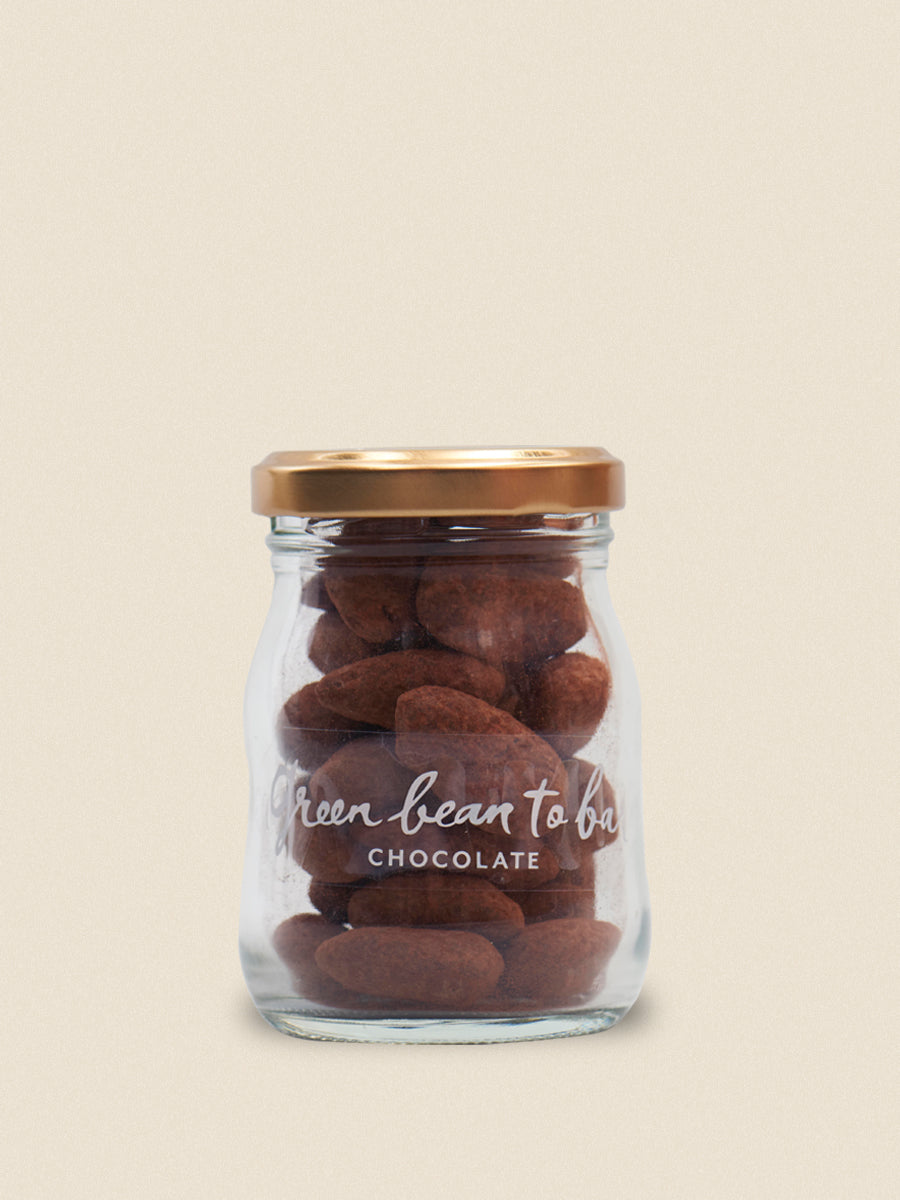 オーガニックアーモンドにカカオパウダー、チョコレートをコーティング。