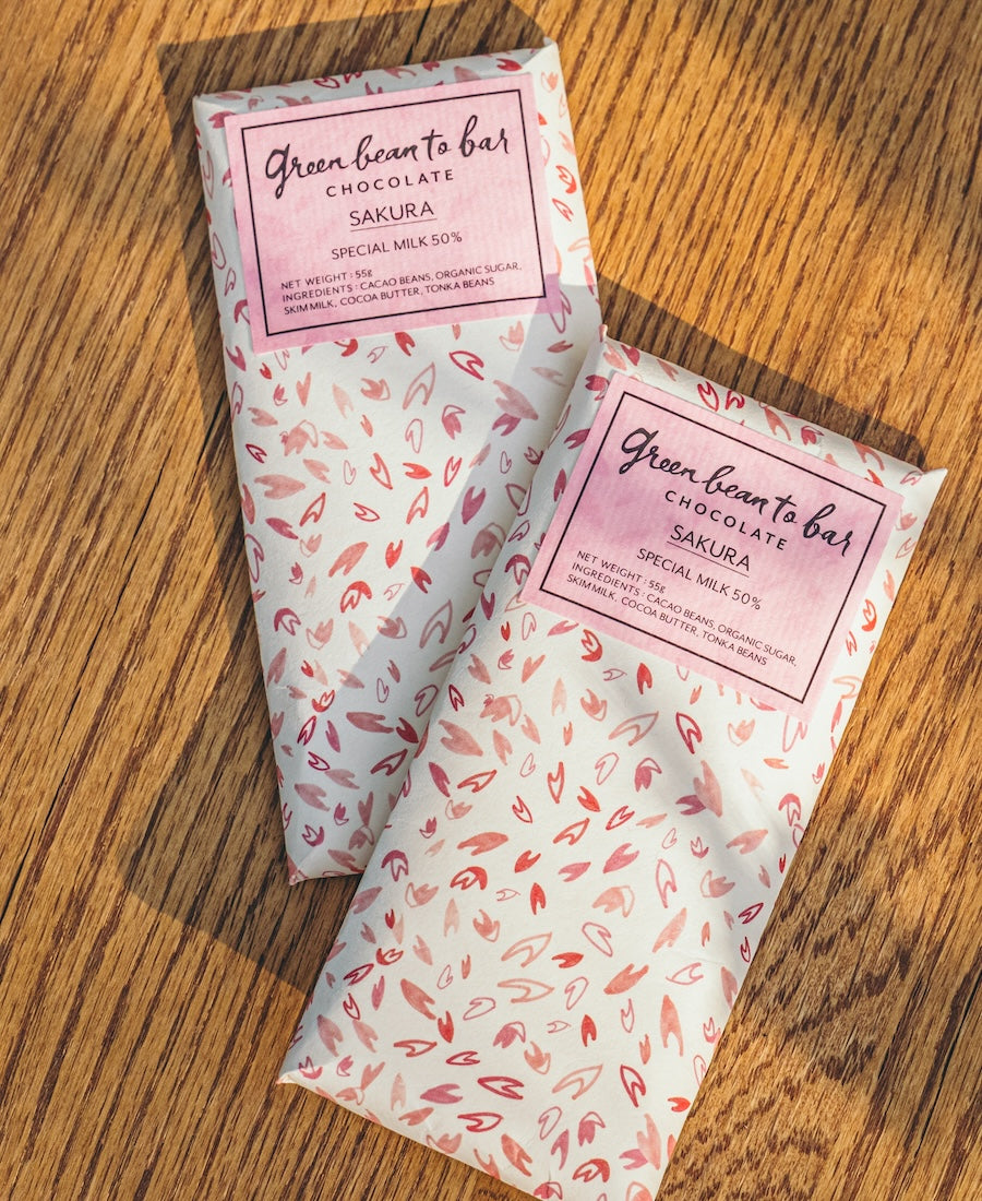ペルー産のカカオ豆「パロブランコ」を使ったミルクチョコレートに、トンカビーンズを漬け込んで香りづけ。トンカビーンズは、優しく気品のある甘い香りが桜を思わせる、マメ科の植物素材です。特に香りの高いベネズエラ産のものを使い、桜が舞うかのようにふわりと品よく香るチョコレートに仕上げました。