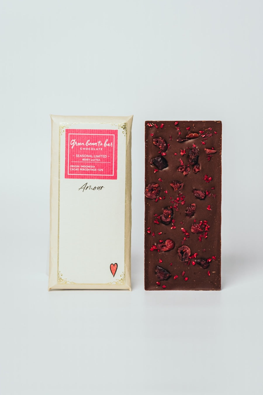 ダークチョコレートでありながら、豆本来のベリーさを存分に引き出し、ピスタチオとカカオニブが味わいに自然なコントラストを加えています