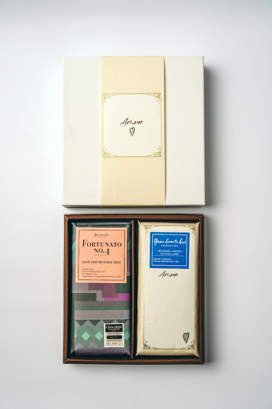 シーズナルバーが1種と映画「The Taste Of Nature2」の題材にもなった幻のカカオ、ナショナルを使用したフォートゥナートのセット。シーズナルの味と幻のカカオの両方を味わえる贅沢なセットです。